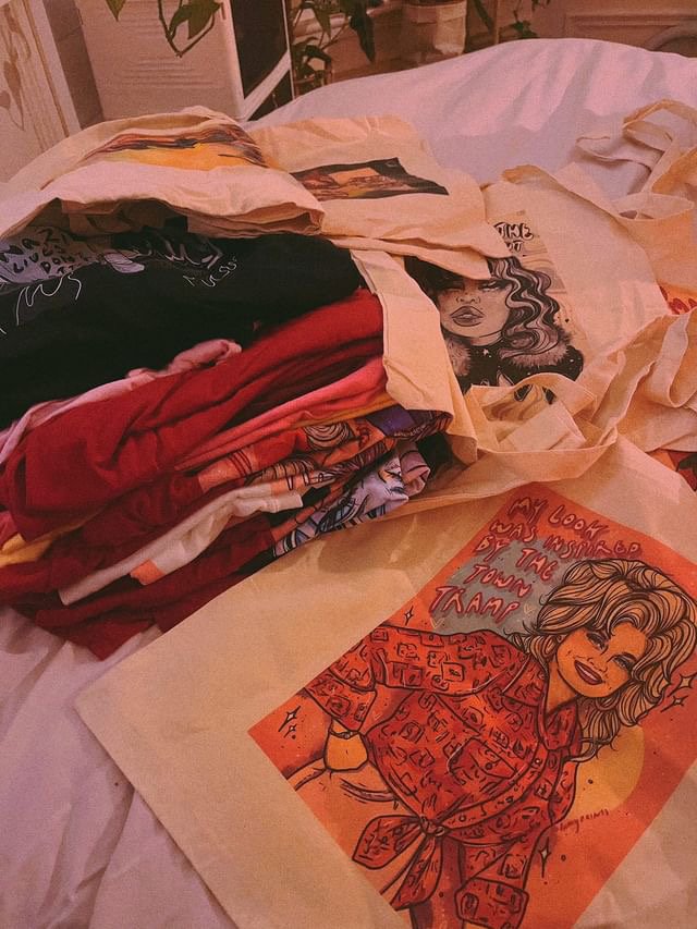 In this time i’ve been creating art and working, I have been lucky enough to work with many amazing people, and creators, and even a handful of drag queens, and create a whole lot of different products like colouring books, mugs, clothing, wall hangings, blankets and the list goes on.